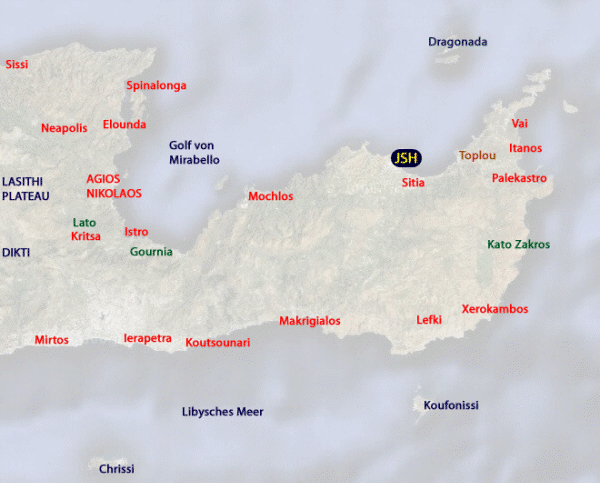 Insel liegt 14 km vor Ierapetra und ist nur im Sommer bewohnt.