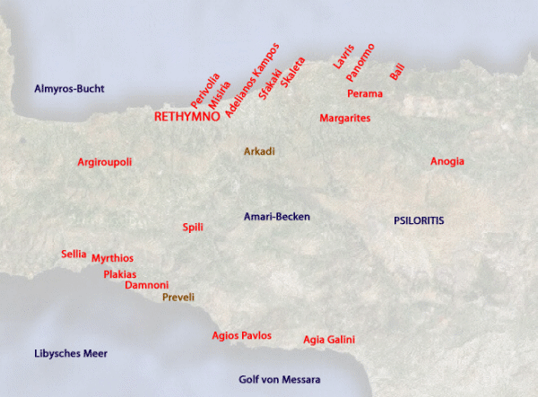 Rethymno an der südwestlichen Flanke des Psiloritis.